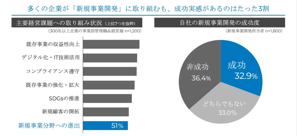 とはいえ、大半の企業が新規事業の開発に苦労しているのが現実です。